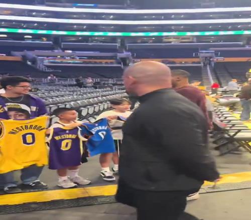 威少给小球迷的球衣签名签了雷霆和火箭的唯独略过了湖人的